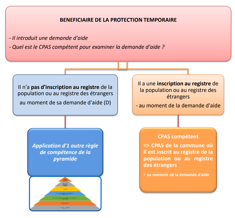 Dans le cas où la personne n’a pas d’inscription au registre de la population ou au registre des étrangers, il faut appliquer une autre de règle de compétence suivant la situation du demandeur d’aide en respectant la hiérarchie des règles de la pyramide pour déterminer le CPAS compétent.