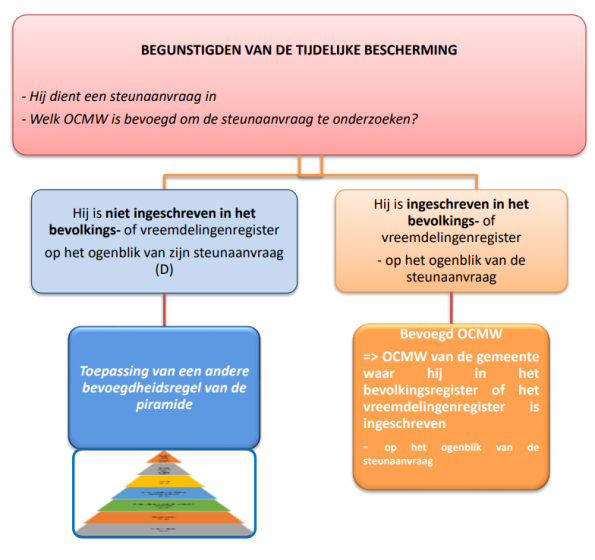 De territoriale bevoegdheid van OCMW’s voor de begunstigden van de tijdelijke bescherming wordt bepaald door de specifieke bevoegdheidsregel van artikel 2, §5 van de wet van 2 april 1965 betreffende het ten laste nemen van de steun verleend door de openbare centra voor maatschappelijk welzijn.